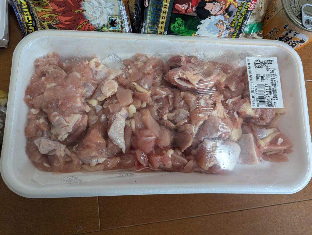 ラムーの鶏肉がめっちゃ安いです!ブラジル産のもも肉になりますが、100gあたり79円とかなりお得です!777g入って税込み662円はめっちゃ助かります!