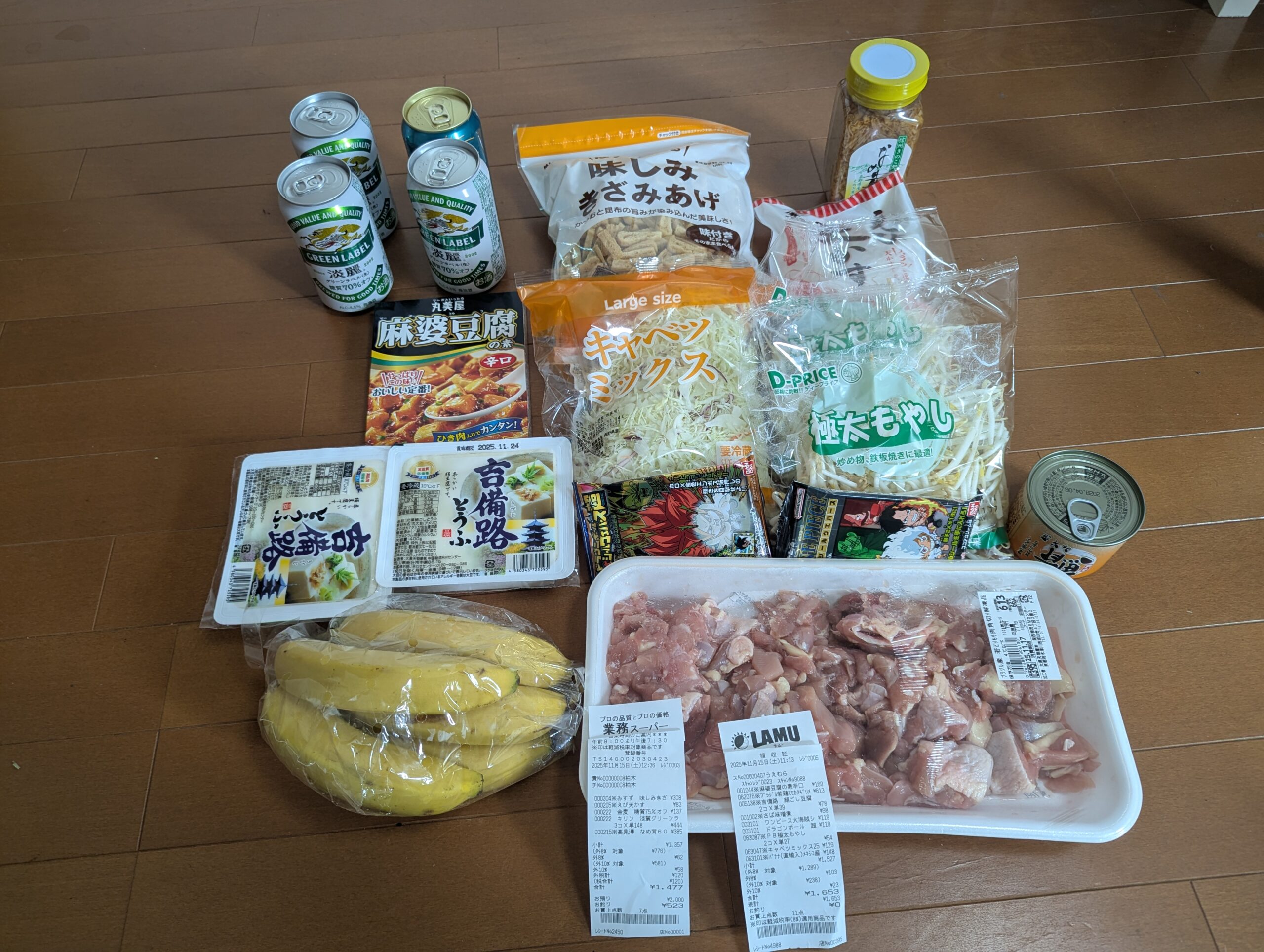 今週は、業務スーパーでは、冷凍食品のストックがまだあったのと無駄にビールを買ってしましいこの金額になっています。