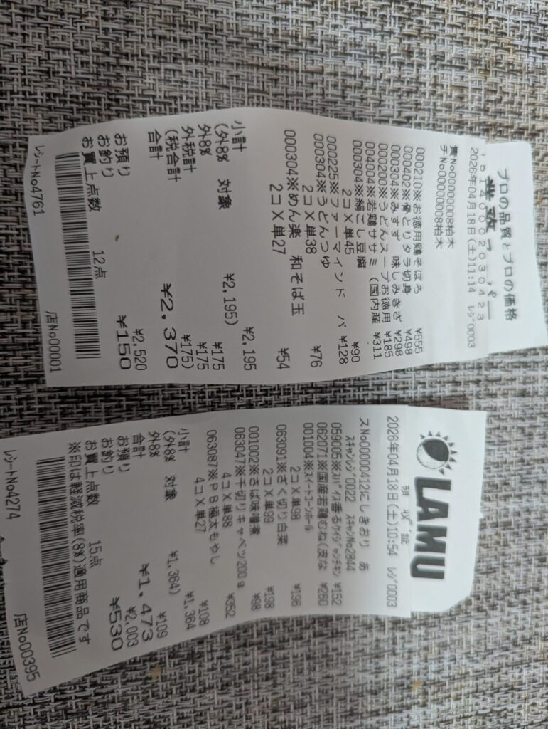 ちなみに、ダイエット及び禁酒期間中の週1回の買い物のレシートです!